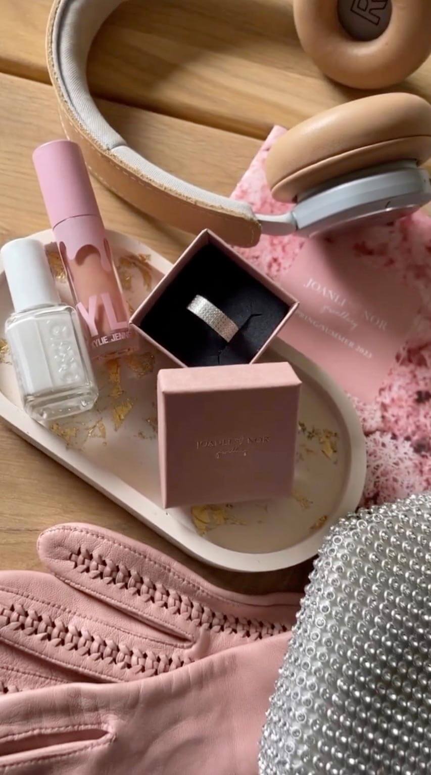 Æstetiske billeder taget oppefra med produktet i centrum og supplerende produkter for at skabe stemning.